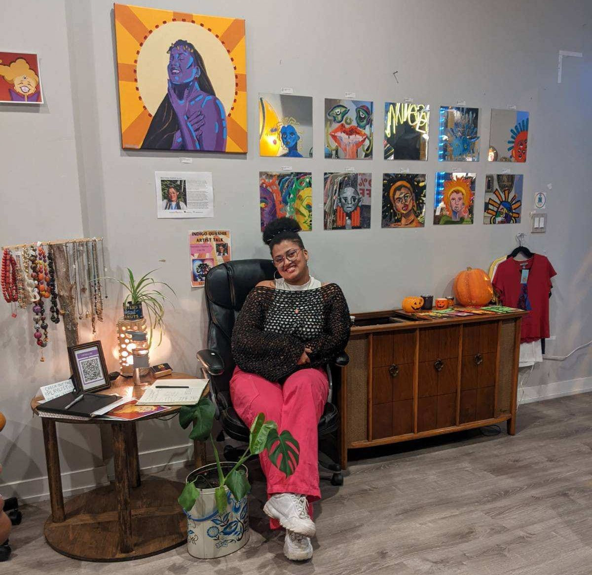 My name is Indigo Adobea Abena Joy Quashie (They/them). I am a queer Black person from the southside of Chicago who has pursued a creative lifestyle for the past 15 years. I graduated from Ohio's College of Wooster with a Bachelor of Arts in 2021, majoring in Studio Art and minoring in Adolescent Education. With various experiences in editorial, painting, digital art, photography, and more, I enjoy centering my work around the connections between art and human experiences.